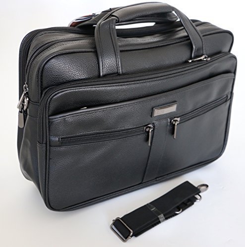 Best Seller! globehopper 15.6" Black Laptop Briefcase Messenger Bag with Shoulder Strap & Carry Handles, Leather Feel Review