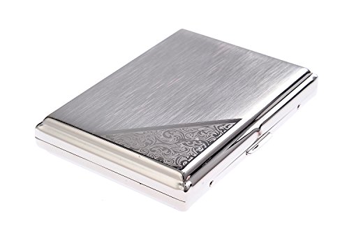 Best Seller! High-grade Stainless Steel Cigarette Case, with elegant tendril pattern at a corner, holds 16 cigarettes, silver/golden, Mod. KC4-06 (DE) Review