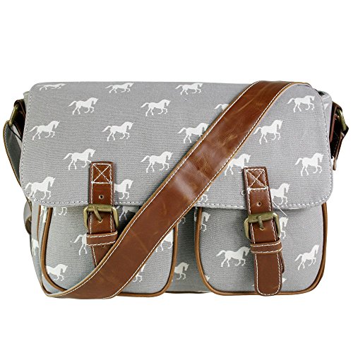 offer Miss Lulu Canvas Owl, Butterfly, Elephant, Horse, and Oilcloth Cupcake Pattern Design Satchel Saddle Messenger Shoulder Bag, Grey, Medium. This awesome product currently limited units, you can buy it now for £11.99, You save -