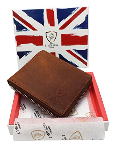 J. Wilson London offer RFID BLOCKING Protection Distressed Brown Genuine Leather J Wilson London Mens ZipAround Wallet With Zip Coin Pocket Gift Boxed. This awesome product currently limited units, you can buy it now for £11.95, You save -